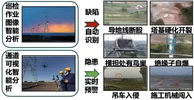 基于人工智能平台开展设备缺陷识别模型训练,,并通过人工智能平台运行环境,,为设备业务应用提供输电类缺陷检测模型服务,,提升线路及设备缺陷和通道外破隐患识别水平,,,,实现巡检作业质效显著提升。。